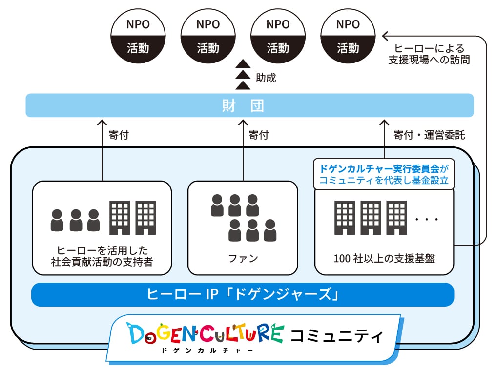この基金は、ヒーローというコンテンツを軸に、企業の皆さまのご支援、番組やイベントを応援してくださるファンの皆さま、そしてこの想いに共感してくださる寄付者の皆さまと共に、コミュニティと地域全体でつくる持続可能な社会貢献の循環を育てていくことを目指しています。