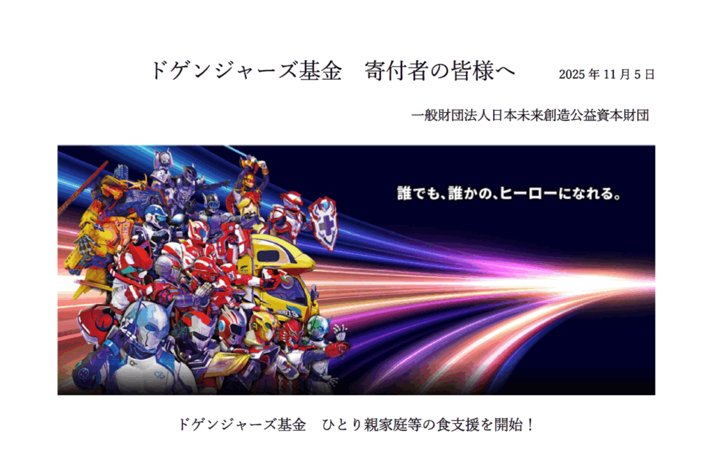 2025年9月6日にスタートした「ドゲンジャーズ基金」について、公開よりたくさんのご支援をいただきありがとうございます。