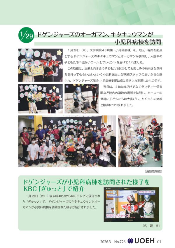 2026年1月29日、ドゲンジャーズ基金の助成金を活用し、産業医科大学病院の小児科病棟へヒーロー派遣を行いました。